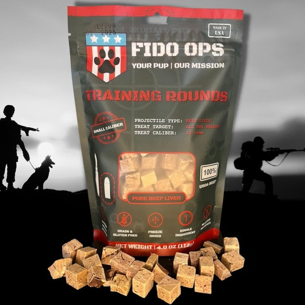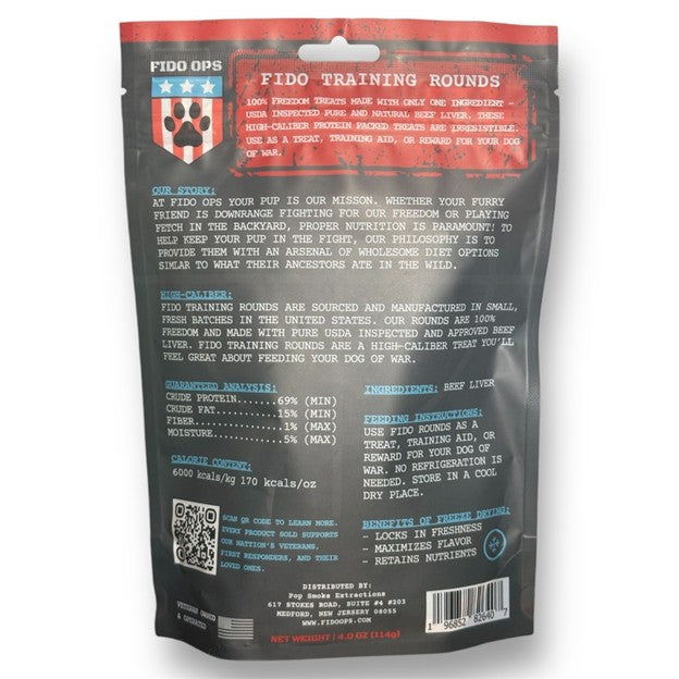 * Made from all natural beef liver that has been freeze-dried in small fresh batches to keep all nutrients and taste for your dog of war to enjoy. * Beef liver is rich in protein, amino acids, iron, and B vitamins, which will assist your dog in battle. * The single-ingredient, gluten-free, and grain-free recipe makes this training round ideal for dogs with food allergies or who follow a limited-ingredient diet. * Free of all chemicals, additives, and preservatives since your pet deserves only the best natural ingredients. * The FIDO OPS guarantee assures that all ingredients are 100% traceable and confirmed and that they are sourced, administered, and packaged in the United States.